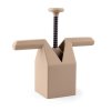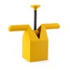 - Auf einer ebenen Unterlage den Würfel durch Gegenbewegung auspressen (Kolben mit den Daumen nach unten, Griff nach oben).