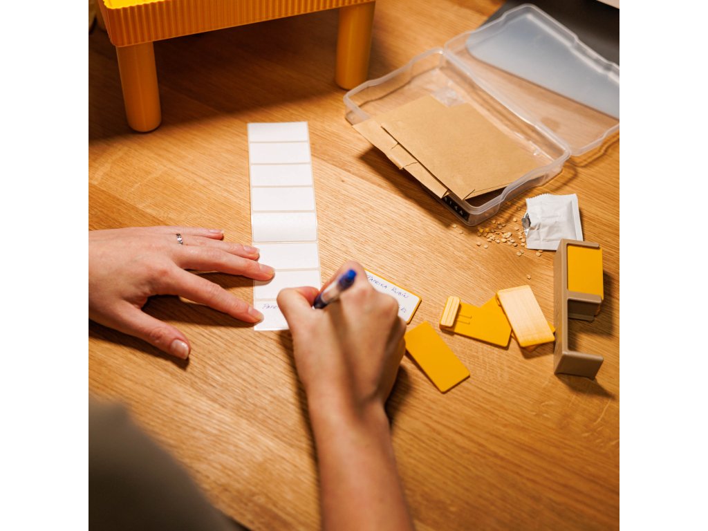 Jakmile se ve stolku začne dařit více druhům najednou, je snadné ztratit přehled. Sada výsevních štítků Vám pomůže mít jasno v tom, co je v které řadě vyseté – čistě, přehledně a opakovaně použitelně.