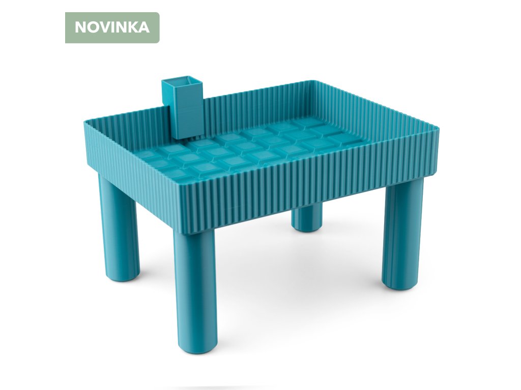 Do stolčeka sa zmestí 48 malých kociek z BLOKU 8 a BLOKU 24 alebo 6 veľkých z BLOKU 1. Rozmery: 17,9 × 23,2 cm, výška hrany misky 3,6 cm, celková výška stolčeka 13,5 cm.